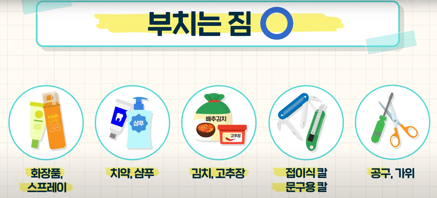 기내반입, 기내반입물품, 기내반입금지물품 조건을 확인 가능합니다.