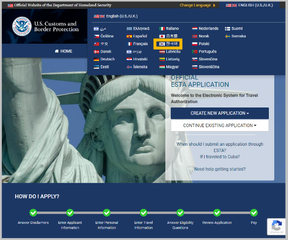 ◈ 공식 홈페이지 주소는 https://esta.cbp.dhs.gov/esta 입니다.
